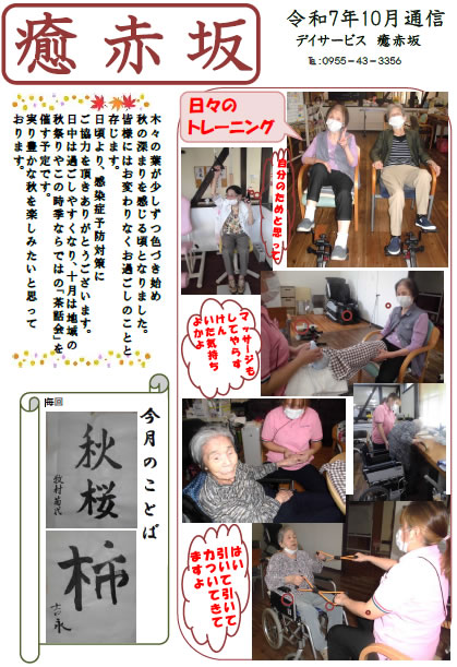 「人と人とのふれあい」「住み慣れた地域・環境で自分らしく」を大切に、「生き生きと安心して過ごして頂くため」に、利用者様が孤独を感じる事無く幸わせなひと時「癒]されるよう、心をひとつにしてお手伝いさせて頂きたいと思います。